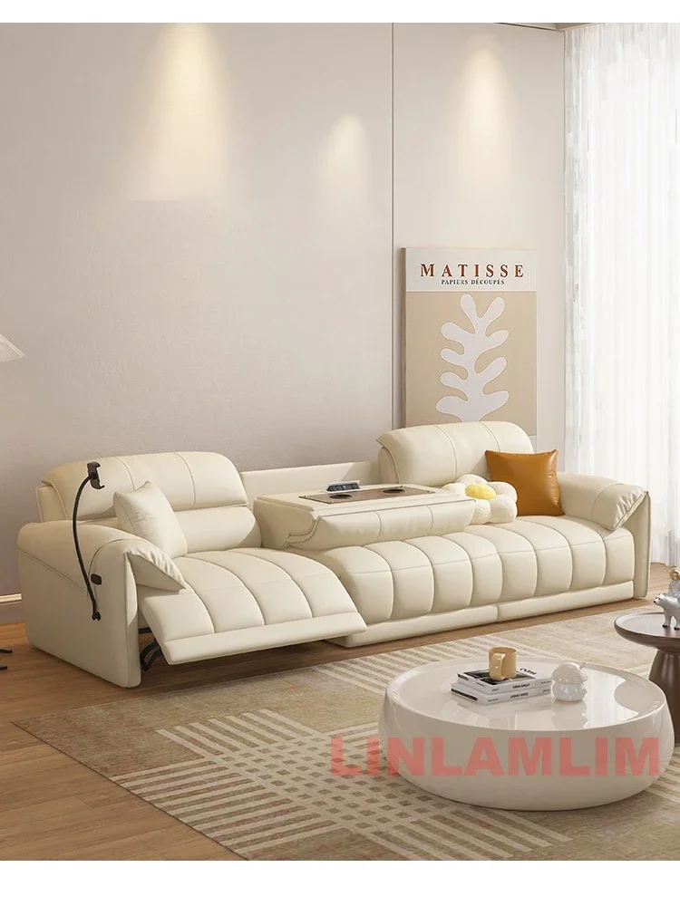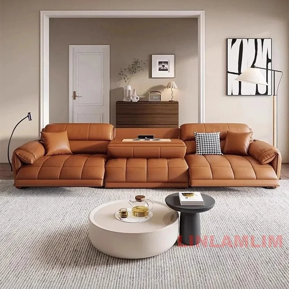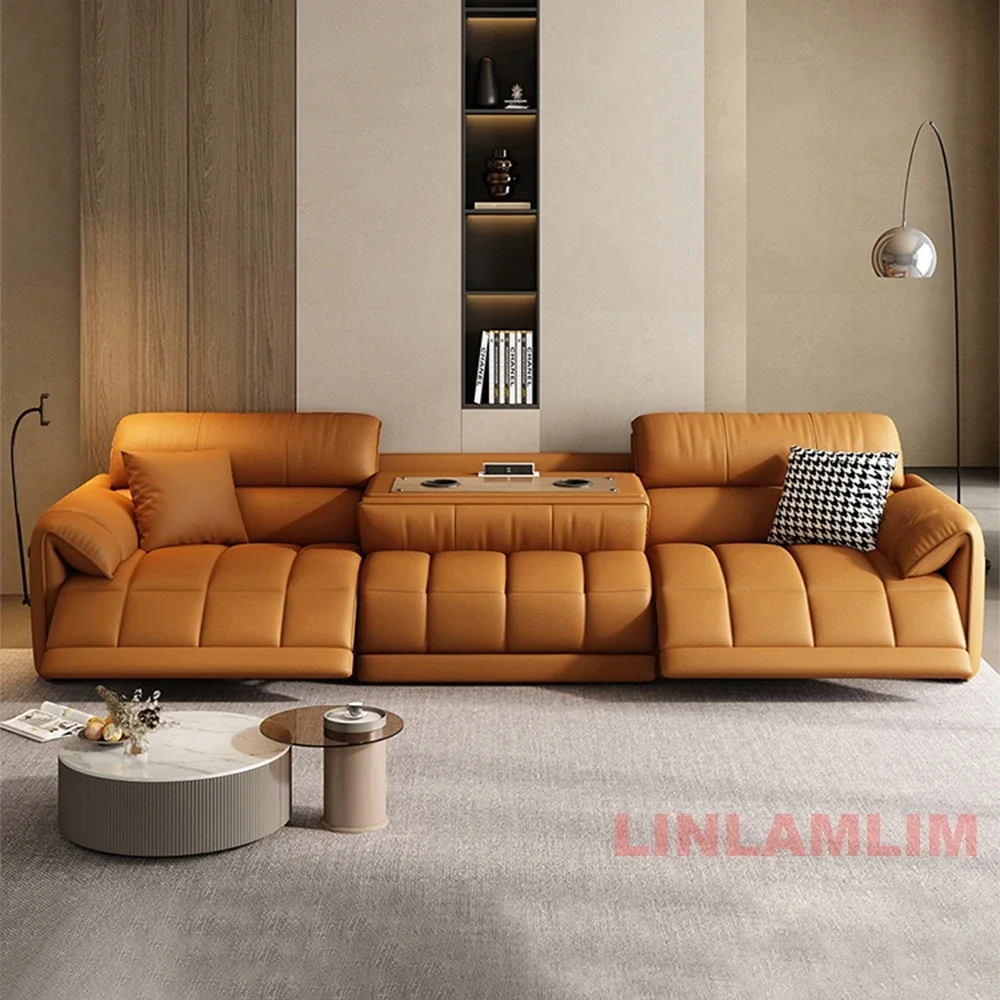 Modern Electric Reclining Sofa with Adjustable Footrest, Built-in USB Ports, and Foldable Center Console – Italian Genuine Leather Power Sofa for Living Room
